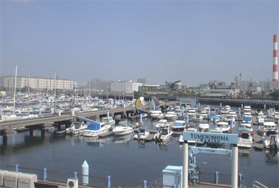 さて、当日は、前日までのぐずついた天気とはうってかわって雲ひとつない快晴。うきうきした気分をさらに盛り上げてくれる陽気でした。午前9時新木場駅前集合、徒歩で夢の島マリーナへ。まず、ボートハウスへ。ここは会員専用で、キッチン付のラウンジにソファーが並んでいてくつろげる空間です。ヨットに乗らずシェフ専門というお料理が趣味の方と、梶原先生の仲間のヨットのオーナーさんと、その仲間の方々が集まっていました。10時出航。いよいよ乗船です。